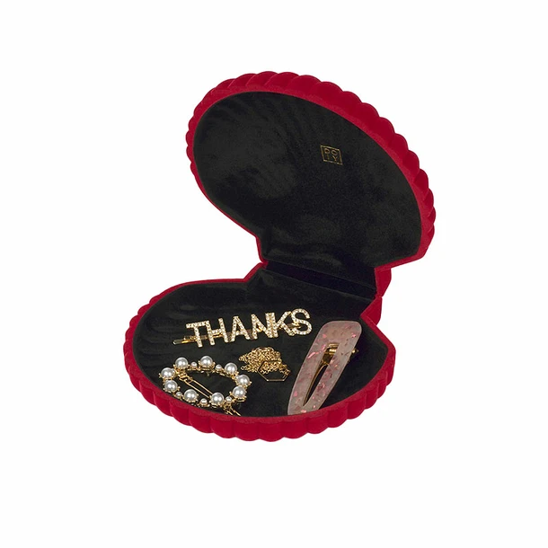 Boîte à bijoux en velours rouge en forme de coquillage pour cacher vos bijoux les plus précieux.