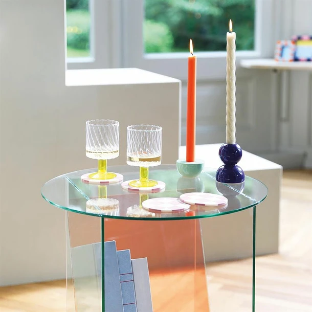 La forme géométrique associée à une couleur rétro audacieuse donne à ce bougeoir un look unique. Ce bougeoir convient pour une bougie de table d’un diamètre de 2,2 cm dans la couleur de votre choix !