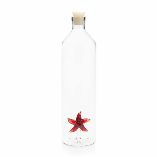 Carafe d’eau Balvi en verre borosilicate avec un bouchon de silicone, une figurine d’étoile de mer en verre coloré est fixée à l’intérieur.