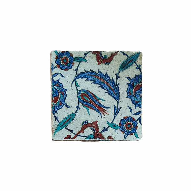 Dessous de verre en terre cuite et liège collé au dos avec un motif Iznik.