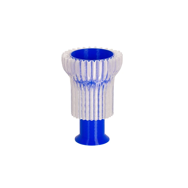 Cet objet est fabriqué en impression 3D à partir de bouteilles plastiques recyclées et recyclables ainsi qu’en bioplastique compostable industriellement fait à partir d’amidon de maïs (rPETG + PLA).