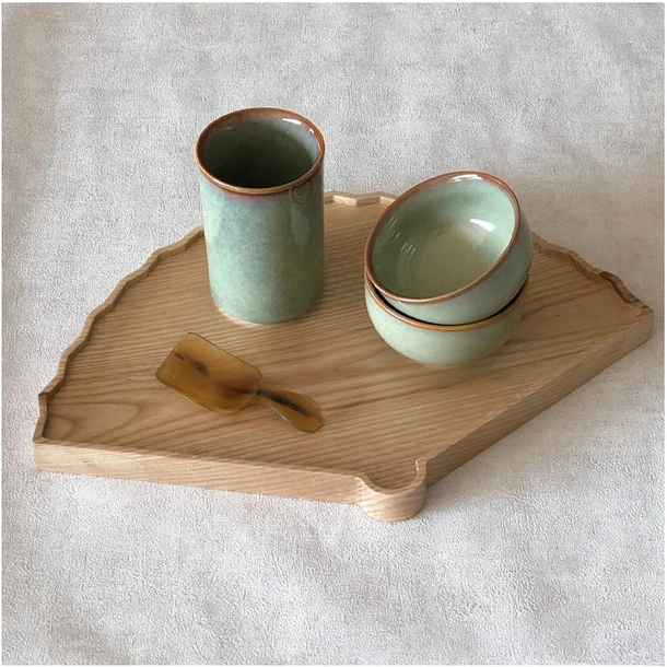Un éventail tout asiatique, avec beaucoup de grâce pour ce plateau utile et décoratif.