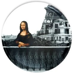 Dans cette revisite du grand classique du musée parisien, la Joconde ne pose plus ses mains sur ses genoux mais sur une rambarde de pont parisien. Cet étonnant assemblage offre une nouvelle vision de la Joconde qui ‘a pas fini de nous surprendre !