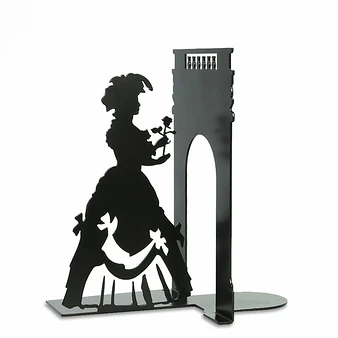 Ce serre-livres est une création inspirée du tableau d’Élisabeth-Louise Vigée-Lebrun, Marie-Antoinette, Reine de France, présente Marie-Antoinette et épouse du roi Louis XVI avec une élévation du Trianon en arrière plan.