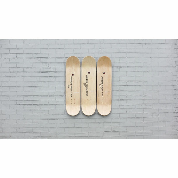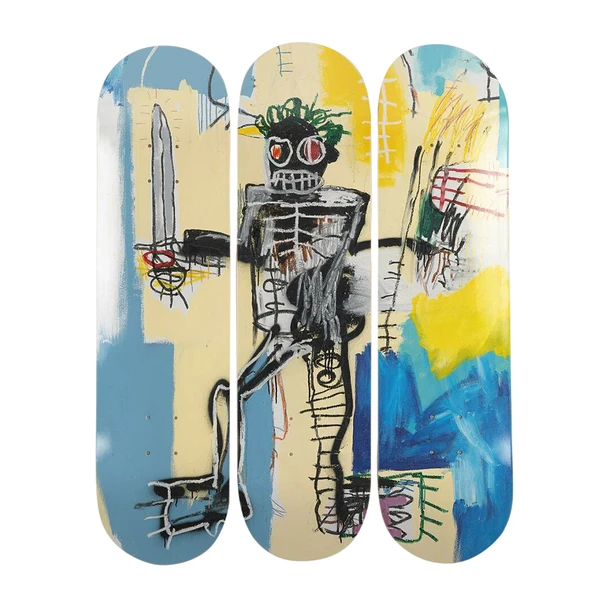En objet de décoration design ou simplement à utiliser avec des roues, les skates Jean-Michel Basquiat « Warrior », 1982 trouveront leur place.