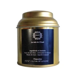 À l’origine de ce thé, la volonté de créer une recette qui rende hommage à Emile Guimet, fondateur du Musée éponyme. Les pétales de bleuet sont un clin d’œil au « bleu Guimet », aussi appelé « outremer artificiel », inventé par Jean-Baptiste Guimet, père d’Emile.