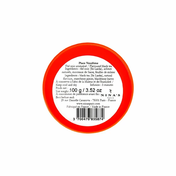 Thé noir aromatisé Place Vendôme réalisé par Nina’s, maison de thé parisienne depuis 1672, spécialiste des parfums et arômes.