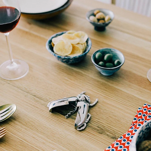 Tire-bouchon métallique original et élégant en forme de scarabée.