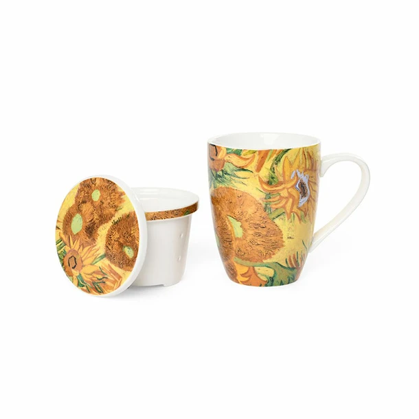 Tisanière en porcelaine, décorée d’un détail du tableau de Vincent van Gogh (1853 – 1890) « Les tournesols », 1889, collection du musée Van Gogh, Amsterdam.