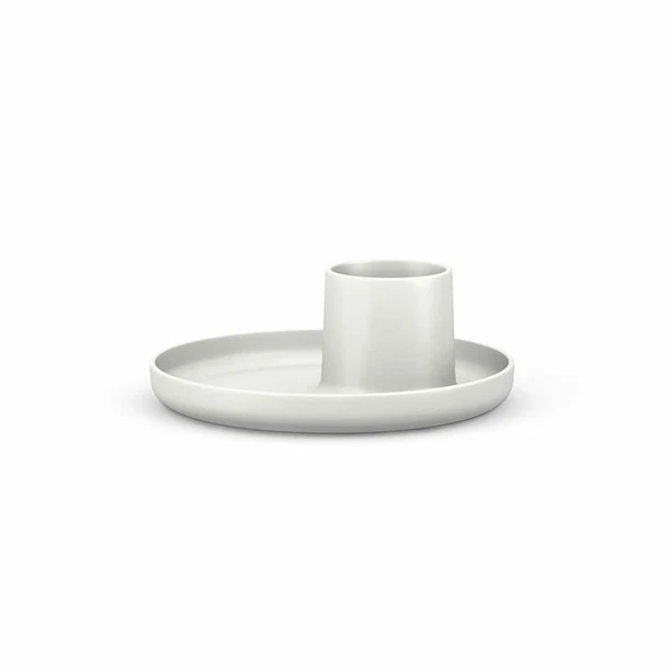 Vide-poche blanc de la marque Vitra, hybride entre un plateau et un pot à crayon, réalisé par le designer suisse Michel Charlot pour Jasper Morrison.